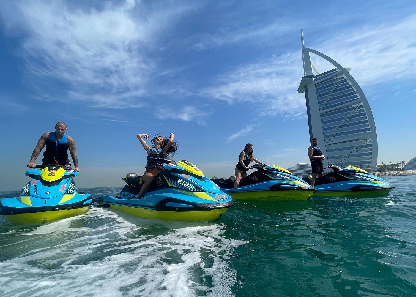 Experience a thrilling jet ski ride from Umm Suqeim Marina, right by the iconic Burj Al Arab. Cruise along Jumeirah Beach Hotel, enjoy spectacular views of Dubai’s skyline, and on clear days, spot the towering Burj Khalifa. With a safety briefing, complimentary photos and videos, this adventure suits all skill levels. Finish your experience with a refreshing ice cream at Lumiere Café to sweeten the day.
